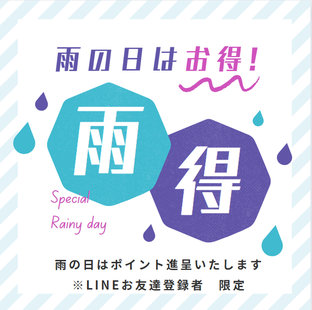 雨の日にご来店頂くと、LINEお友達登録限定のお客様に