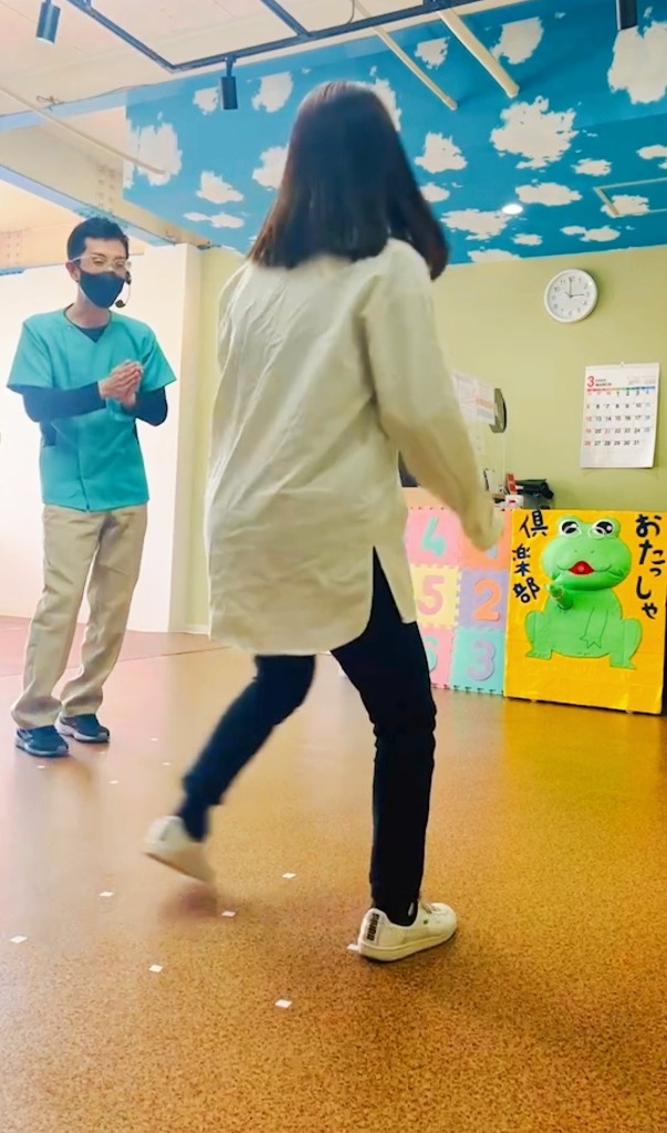 ただ音楽に合わせ動かす運動だけでなく、歌いながらステップ台の昇降運動を行うことで、